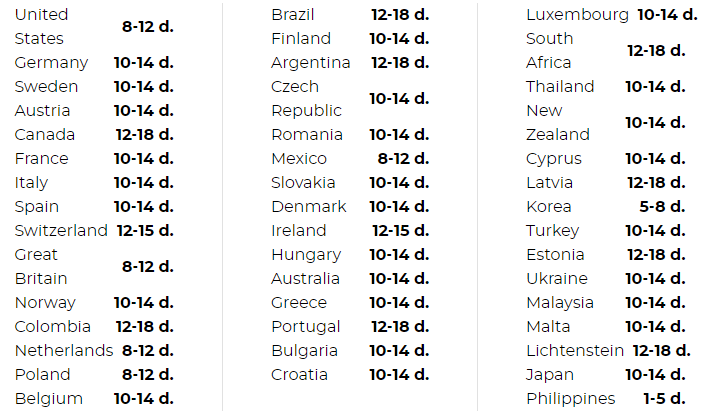 Normalmente, levamos cerca de 1 a 2 dias úteis para processar seu pedido. Depois disso, você pode esperar os seguintes prazos de entrega, dependendo do seu país: